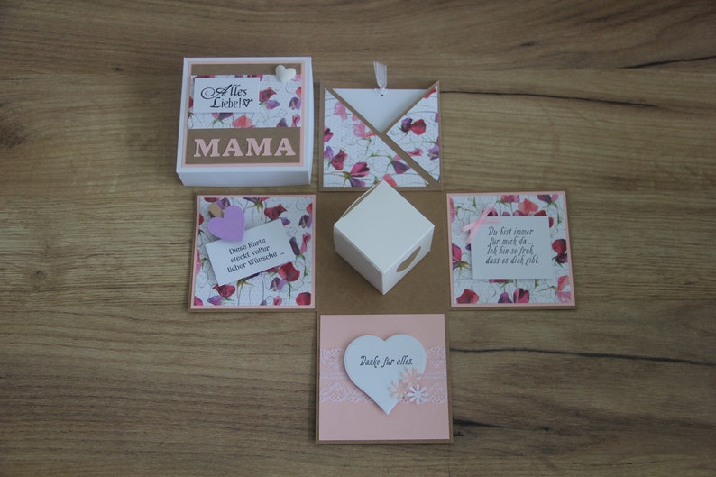 Explosionsbox Muttertag / XXL Explosionsbox Engel mit Beleuchtung zu Hochzeit ... / Heute habe ich für euch eine explosionsbox die gleichzeitig ein adventskalender für die 4 adventsonntage ist und heiligabend gibt es ein größeres kästchen.. Die explosionsbox als einzigartiges muttertagsgeschenk/ geldgeschenk zum geburtstag wird liebevoll handgefertigt. Die teilnehmer_innen haben sich auch noch eine explosionsbox [hier habe ich dir bereits eine anleitung gezeigt. Wenn man den deckel der box aufklappt, fallen die vier seiten der box. Hier bei dieser box habe ich produkte von stampin'up!, sowie auch fremdprodukte benutzt. Auch diese explosionsbox war ein auftrag.